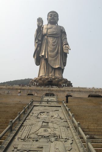 立像。坐落在无锡太湖小灵山上,比闻名中外的乐山大佛还高