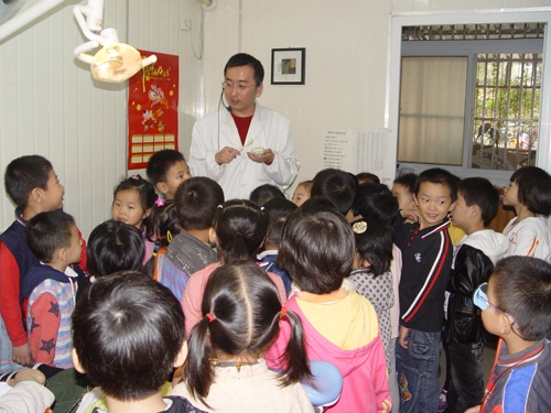 10月28日,十七冶医院口腔科来了80多名特殊的小客人,他们是马钢第二幼儿园的小朋友。这是幼儿园和十七冶医院口腔科联合举办的一堂“爱护牙齿从小做起”的爱牙课,口腔科医生用形象的比喻,给小朋友们讲解了怎样正确刷牙,如何爱护牙齿等爱牙知识,培养小朋友们从小养成良好的爱牙护牙的好习惯。