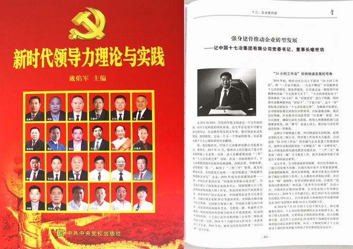 4月13日上午,中国十七冶集团收到中共中央党校出版社《新时代领导力理论与实践》一书,公司董事长、党委书记喻世功入选封面人物,事迹文章作为首篇收录于该书的《企业家风采》专题。