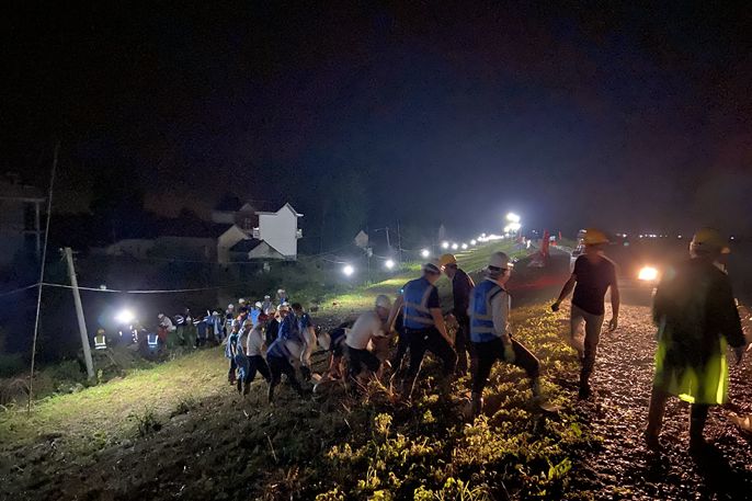 7月16日,受连日强降雨影响,和县功桥镇河堤出现险情,牛屯河新桥闸上水位超保证水位,水位不断上涨,沿河堤防已发生多处险情,请求支援。中国十七冶集团马鞍山经开区科创片区项目党支书记张佳佳接到命令后,立刻从红星中学项目施工现场赶回办公室,迅速组织人员和物资,在短短1个小时间组织了一支由项目全体党员组成的56人组成抗洪抢险突击队,奔赴和县功桥镇抗洪一线。当他们来到和县功桥镇牛屯河新桥闸时,河岸上已经时一级戒备,河水离河岸只差30公分,情况十分危急。面对险情,张佳佳来不及细想,立即组织人员投入战斗,他将队伍分成三组,每组分工协作,挖土、装袋、码放、加固,大家同心协力,有条不紊。组织好人员后,他又迅速投入到和队友一起的战斗中,扛起沙袋,一袋、两袋……此时他已经忘了,他曾经在一次意外过程中腿部严重骨折,医生交代过他今后工作生活尽量不要负重,但是此时在和同志们一起战斗的过程中,他没有表现任何不同,坚持和队员一起奋战在抗洪一线,冒雨抢制沙袋,垒高防护层,加固堤坝,连续奋战七个小时,共装运沙袋1200余个,加固河堤200多米,圆满完成全部加固任务。