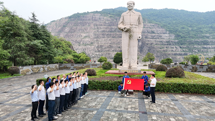 黄石矿山国家公园是毛泽东主席视察过的唯一一座铁矿山,“毛主席手托矿石的石雕像”庄严矗立在公园内日出东方广场中央,纪念1958年9月15日毛主席视察大冶铁矿。广场两边十四组铜浮雕,顺着时间脉络讲述了大冶铁山采铜冶铁的历史,让党员们深刻了解了革命先烈们艰苦奋斗、甘于奉献的矿山精神。在黄石怀宁联合党支部书记的带领下,双方全体党员在毛主席雕像前缅怀沉思,举起右手宣誓,重温入党誓词,用朴素而又庄重的形式,表达了坚定理想信念、践行初心使命的决心。