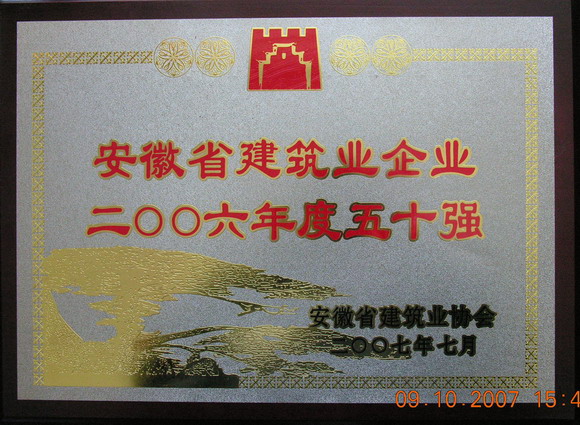 记者日前从省有关部门获悉:十七冶有限公司以优异的业绩荣获“安徽省建筑业企业2006年度50强”和“安徽省2006年建筑业总产值增幅‘50快’企业”两项荣誉称号,分别受到安徽省建筑业协会和安徽省建设厅的表彰。