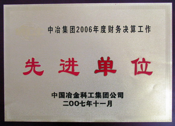 年度财务决算先进单位称号,受到中国冶金科工集团有限公司的隆重表彰。