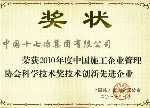 中国十七冶集团有限公司获得2010年度中国施工企业管理协会科学技术奖技术创新先进企业,并有3项技术成果获奖。
