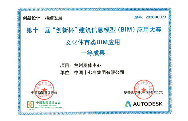 11月14日,中国十七冶集团兰州奥体中心项目收到中国勘察设计协会“创新杯”BIM应用大赛一等成果荣誉证书与奖杯,是公司继兰州奥体中心项目荣获中冶集团BIM大赛一等成果、中国建筑业协会BIM大赛一等成果后,在本领域取得的最好成绩。
