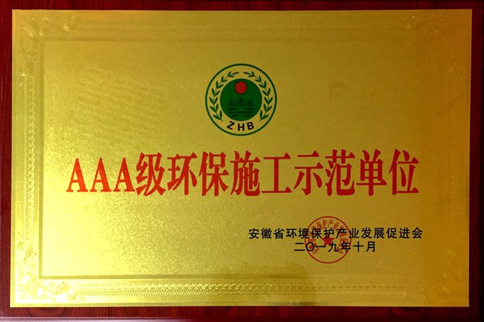 1120日,从安徽省环境保护产业协会获悉,中国十七冶被评为2019年度安徽省“AAA级环保施工示范单位”称号。
